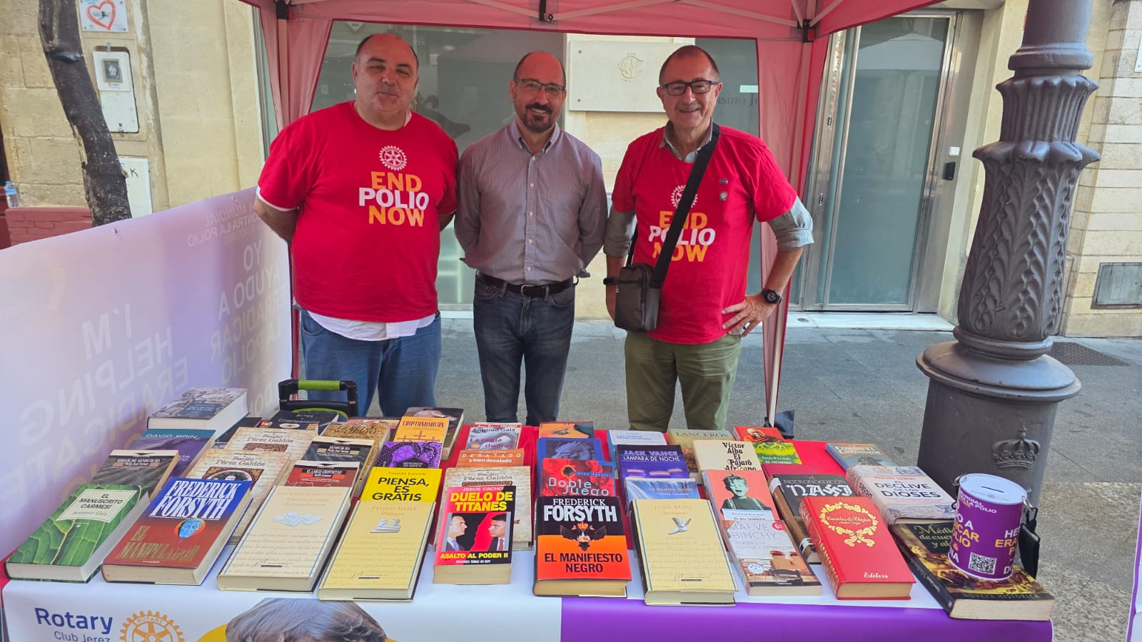 Durante nuestra actividad hemos entregado libros reciclados a aquellas personas que nos han donado alguna cantidad para la Polio. Para ello hemos instalado nuestra carpa en una calle céntrica de Jerez durante gran parte del día.