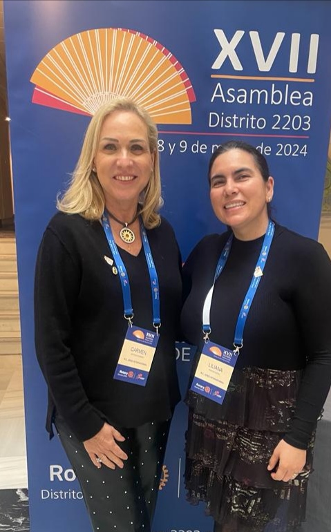 Nuestras compañeras Carmen Ortega actual delegada del gobernador del distrito y Liliana Rincón asistieron el pasado 8 de Marzo a la Asamblea Distrital 2024 en representación de nuestro club. Durante el viernes y sábado asistieron a las diversas ponencias y reuniones de trabajo donde se dieron a conocer proyectos, cuentas anuales del pasado gobernador de distrito así como los presupuestos del próximo gobernador para el año rotario 24-25 Dimas Rizzo. Con asistencia de representantes de todos los clubes de la zona 2203 este acto es uno de los más importantes del mandato de nuestro actual gobernador José Ibáñez junto con el Congreso de Distrito que se celebrará el próximo mes de Junio en Córdoba.