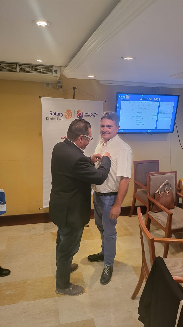 En dicha reunión fue recibido como uno más por nuestros amigos rotarios venezolanos. Hizo entrega como es habitual en estas visitas de nuestro banderín a la presidenta del club caraqueño Dª Valentina Terán, y recibió de manos del gobernador del distrito 4370 D. José Francisco Leal el pin de la amistad Rotaria.