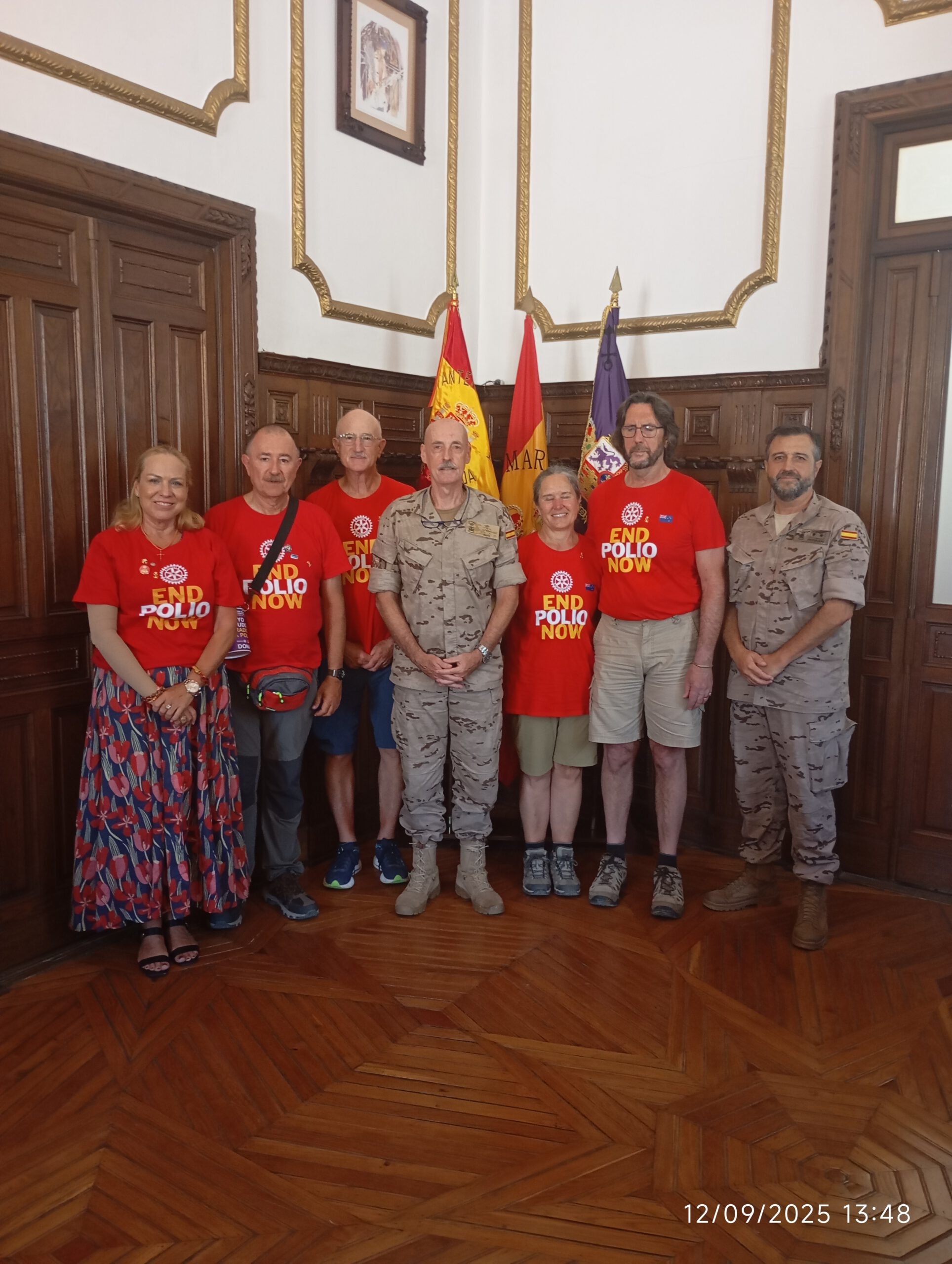 La primera visita se realizó a la Brigada del Tercio de Armada en San Fernando, allí fueron recibidos por el General Comandante Jefe de la unidad D. José Mª Sanz Alisedo al cual le expusieron el propósito de nuestra actividad en relación con la difusión de las actividades que Rotary Internacional lleva cabo en muchos países del mundo junto a la OMS, UNICEF y la Fundación Gates entre otros para controlar y erradicar la Polio. En esa reunión se puso de manifiesto la disposición del TEAR a colaborar con nosotros en la obtención de donaciones entre sus integrantes para el proyecto Polio+ y facilitarnos la participación en los actos alrededor de la carrera de obstáculos solidaria FAN PIN que se celebra todos los años en el mes de Mayo en el entorno de los esteros isleños.