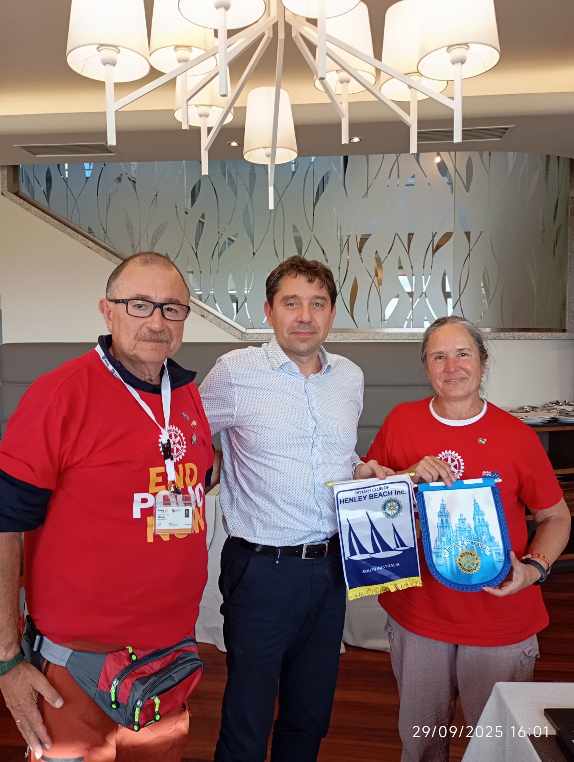 Ya en Galicia, hemos sido recibidos por los clubs rotarios de Pontevedra y Santiago de Compostela con los que hemos intercambiado banderines y hemos convivido unas horas de amistad rotaria, dándonos ánimos y fuerza para concluir nuestro Camino por tierras gallegas.